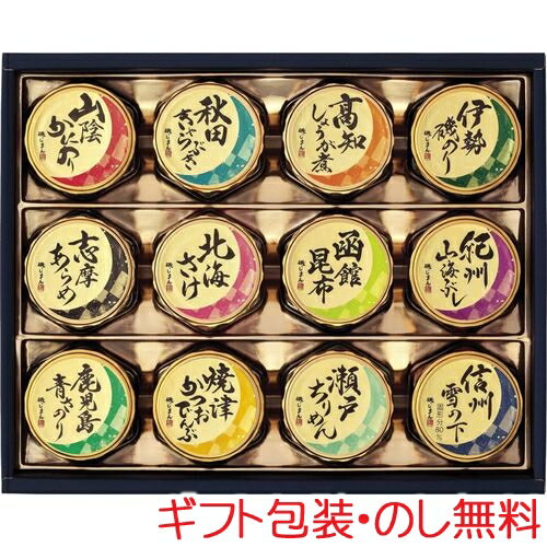 山陰かにのり・伊勢磯のり・紀州山海ぶし・鹿児島青さのり・信州雪の下(各135g)・秋田きゃらぶき・志摩あらめ(各70g)・高知しょうが煮(130g)・北海さけ・瀬戸ちりめん(各55g)・函館昆布(95g)・焼津かつおでんぶ(60g)×各1●賞味期限:常温1年6ヶ月【小麦・かに】■ 磯じまん 日本全国うまいものめぐり 新里-50Aふる里の自然の味覚を日本全国から選りすぐり良い素材を惜しまずに使った佃煮の詰め合せ。